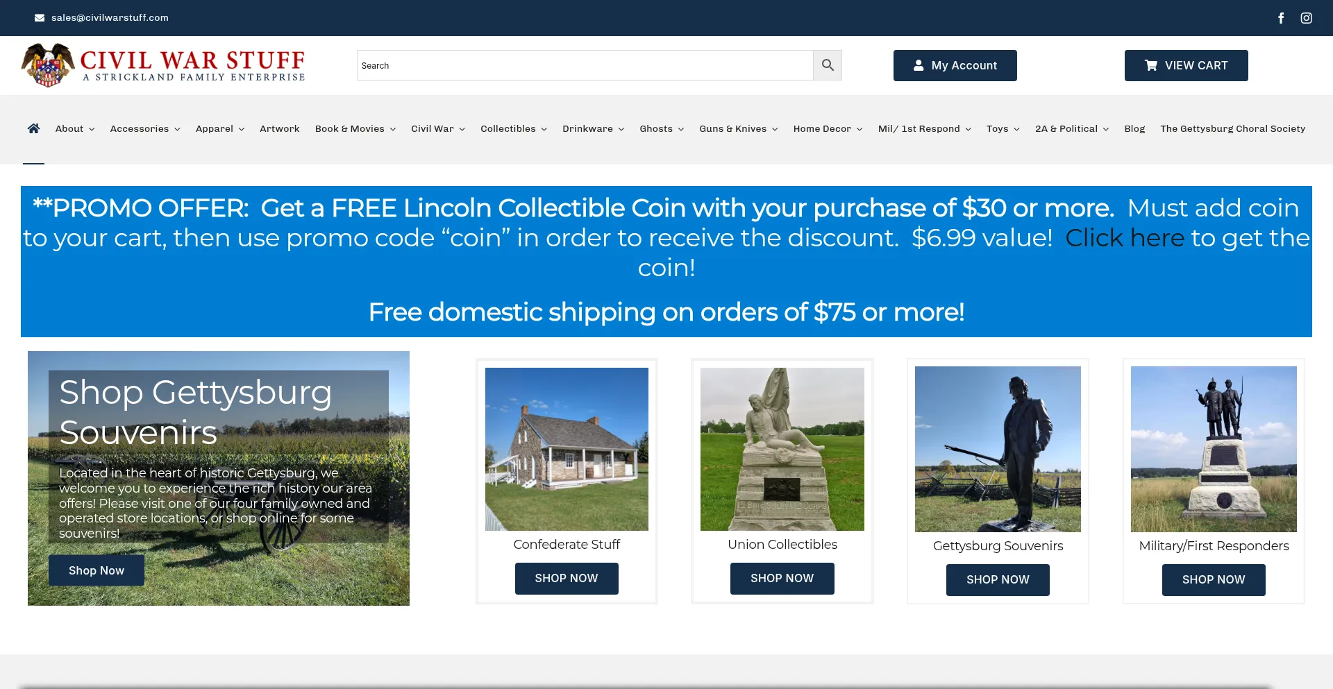 We are a family owned & operated business serving local folks & visitors in Gettysburg, PA since 1970 specializing in Civil War, 2A, & military collectibles.