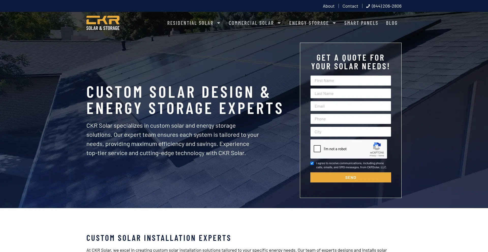 CKR Solar specializes in custom solar and energy storage solutions. Our expert team ensures each system is tailored to your needs, providing maximum