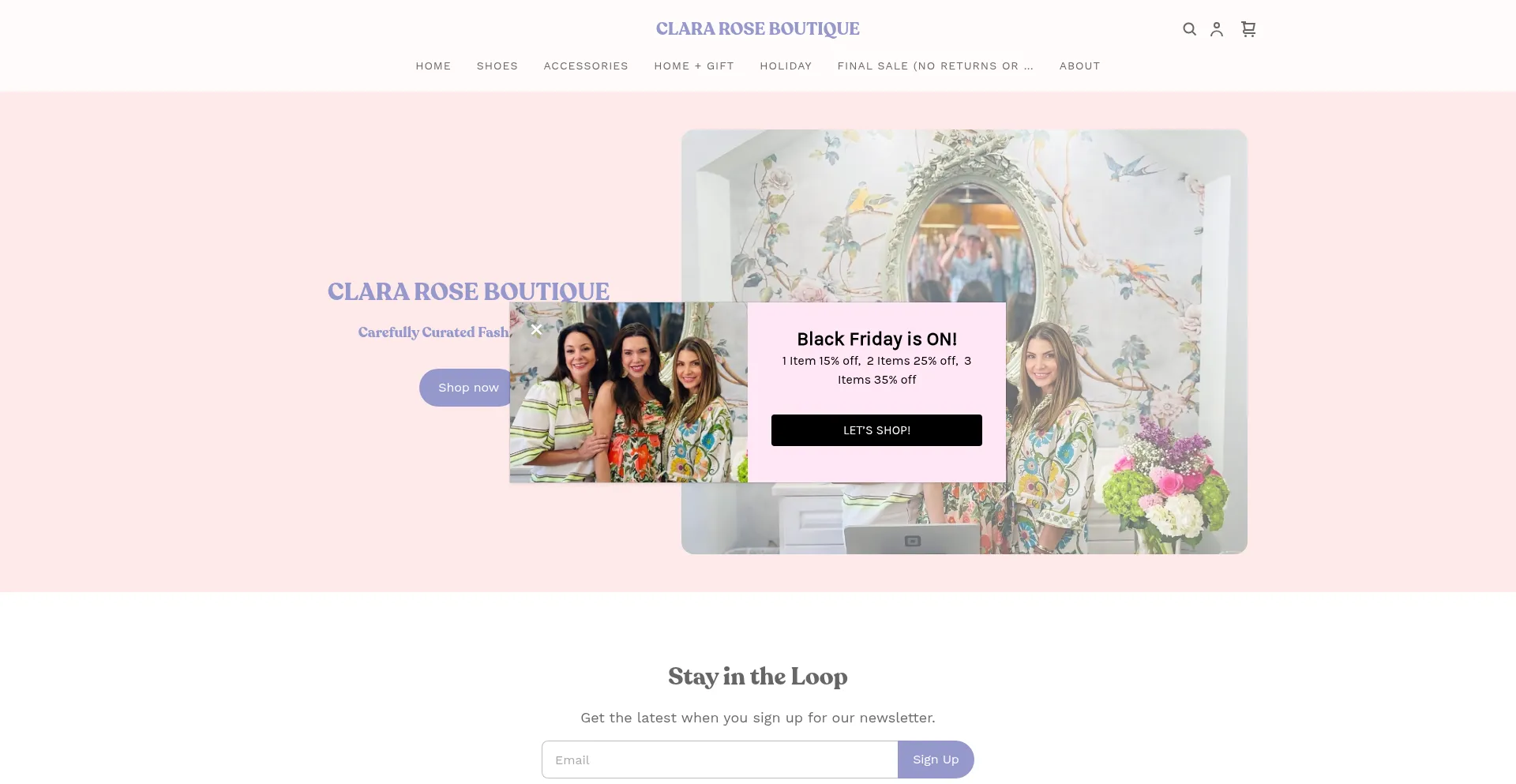 该网站实现符合GDPR或CCPA等隐私法规的cookie同意机制。这表明 clararoseboutique.com 遵守数据保护标准并为用户提供对个人数据收集实践的控制。