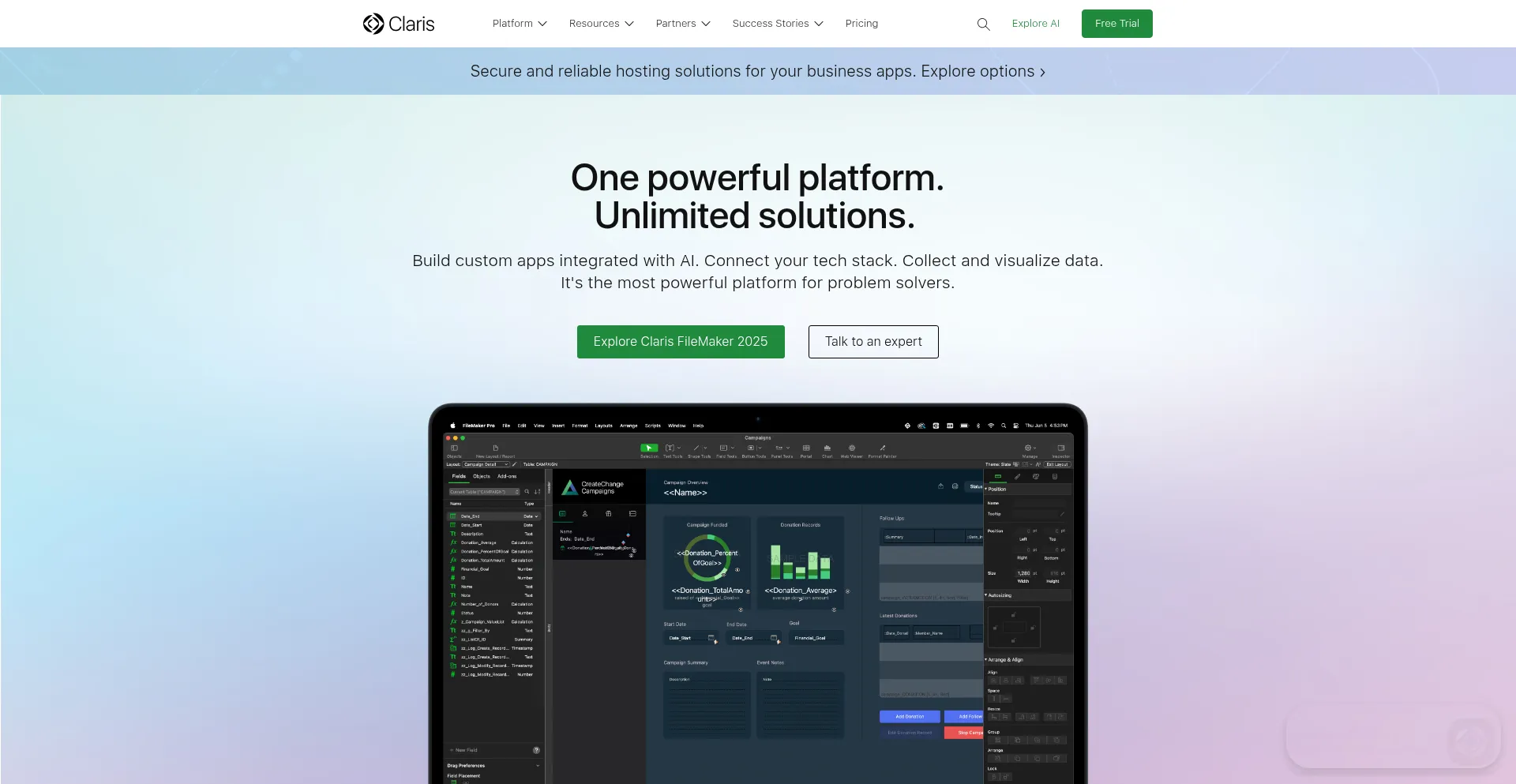 Accelerate app development with the Claris platform. Build AI-powered, custom business apps faster—on a platform trusted by problem solvers worldwide.