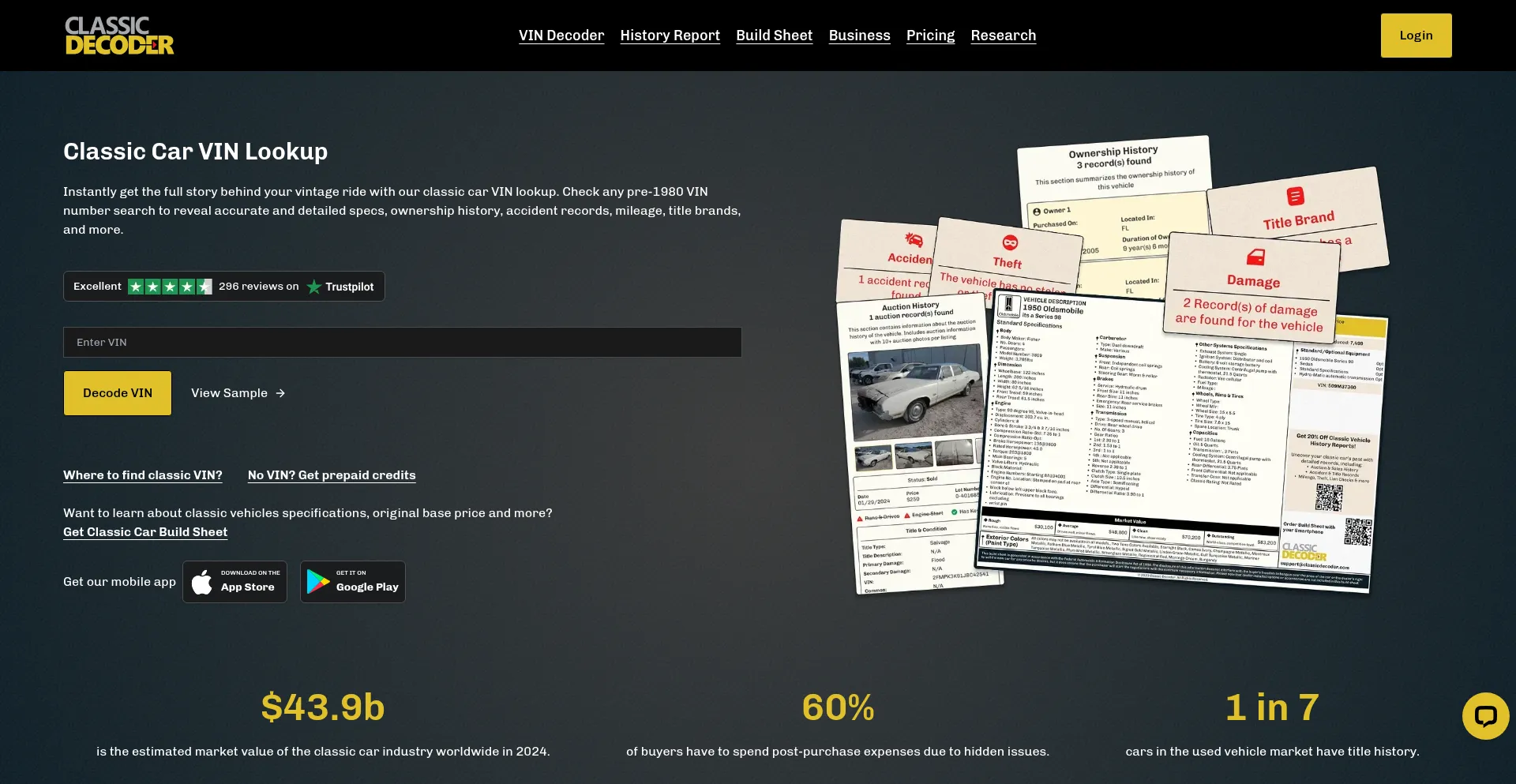 Looking for a classic car VIN decoder? Get a classic car VIN lookup or pre-1980 VIN number search to check full history of vintage, old, antique cars