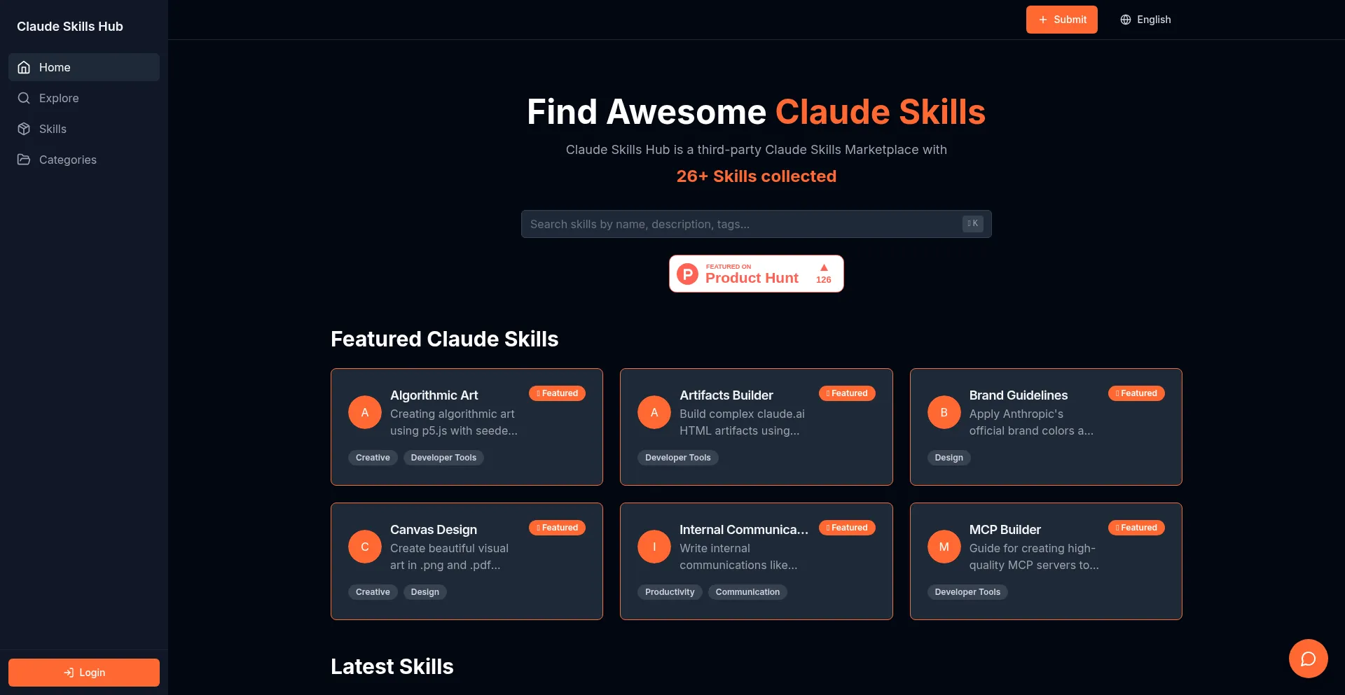 claudeskills.info 在 Product Hunt 上列出,这是一个产品发现和社区反馈平台。