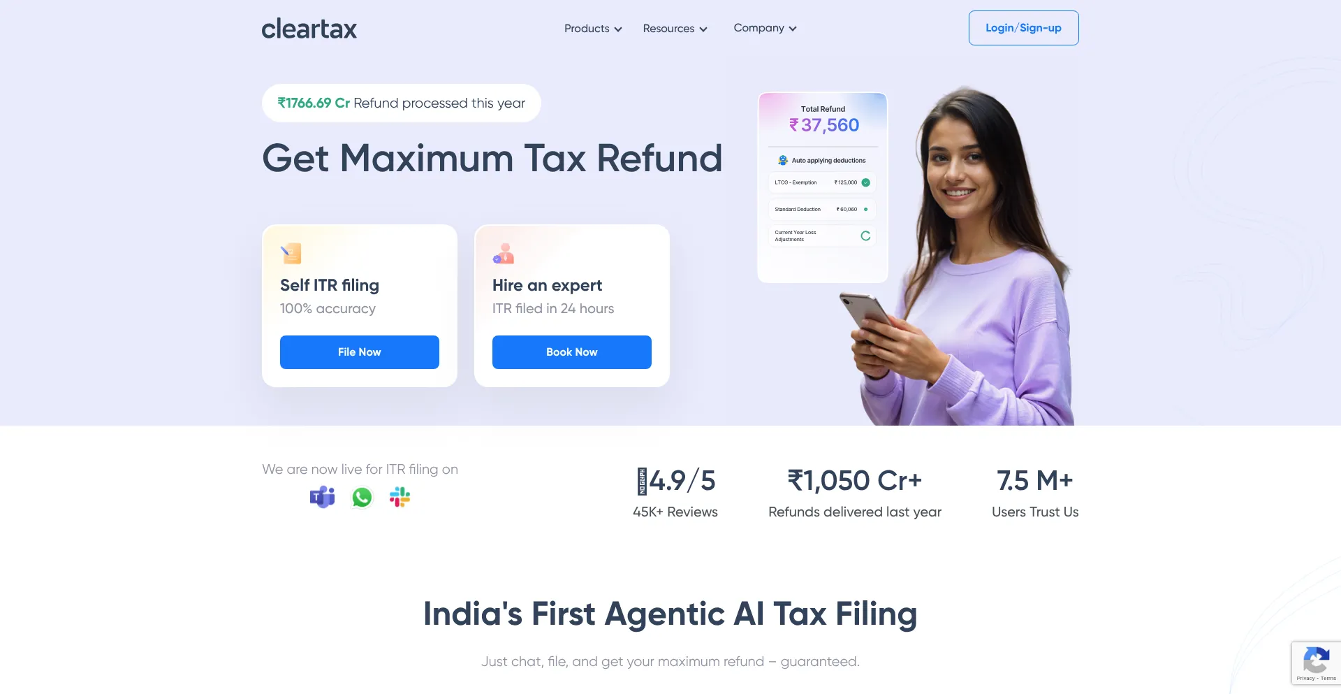 cleartax.in 提供 Android 设备移动应用程序,表明平台存在已扩展到网络服务之外。