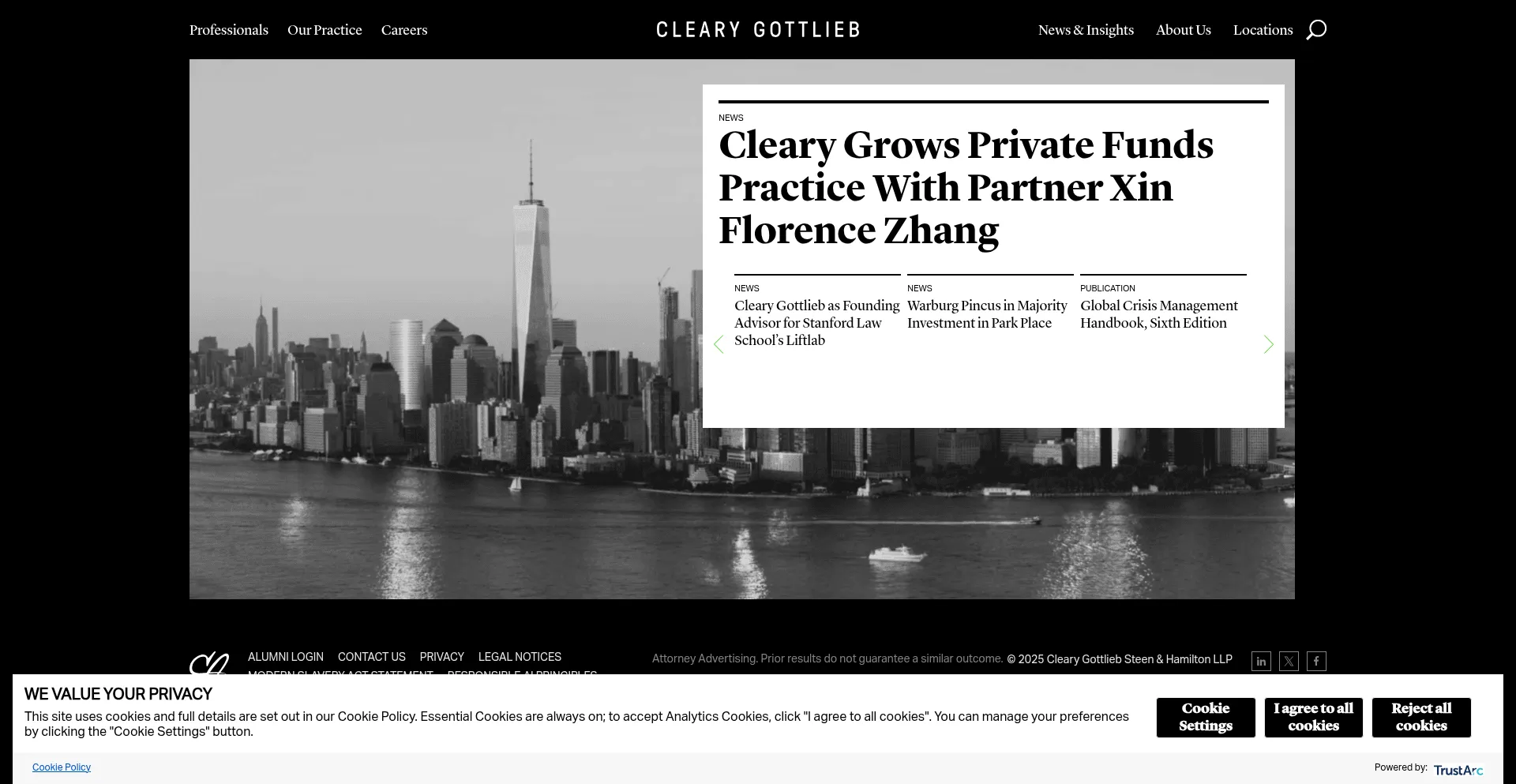 网站上存在社交媒体链接表明 clearygottlieb.com 在社交媒体上维护官方账户,这是可信度和参与度的积极信号。