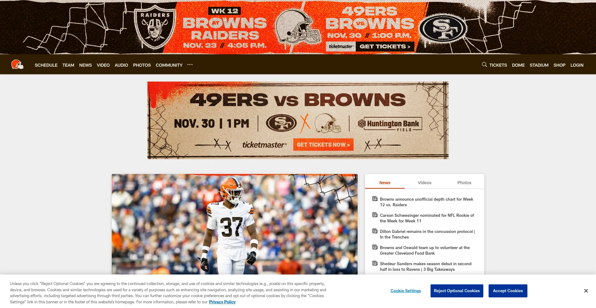 clevelandbrowns.com 提供 Android 设备移动应用程序,表明平台存在已扩展到网络服务之外。