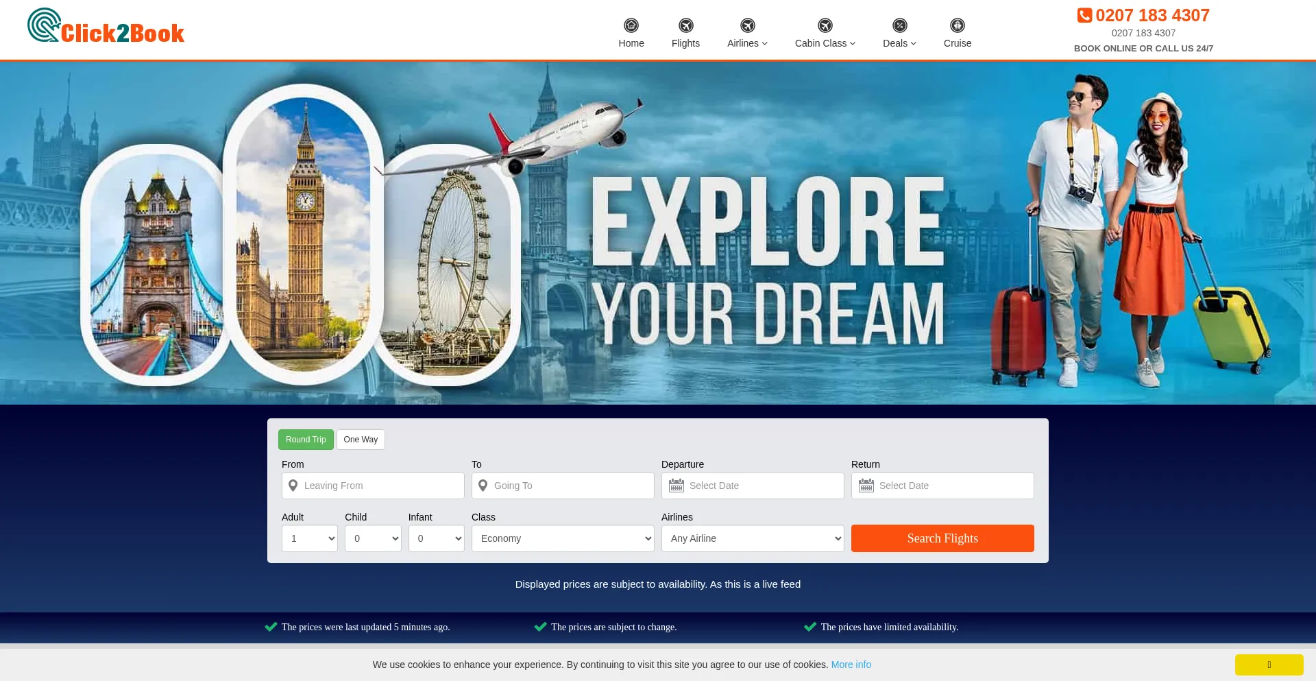该网站实现符合GDPR或CCPA等隐私法规的cookie同意机制。这表明 click2book.co.uk 遵守数据保护标准并为用户提供对个人数据收集实践的控制。