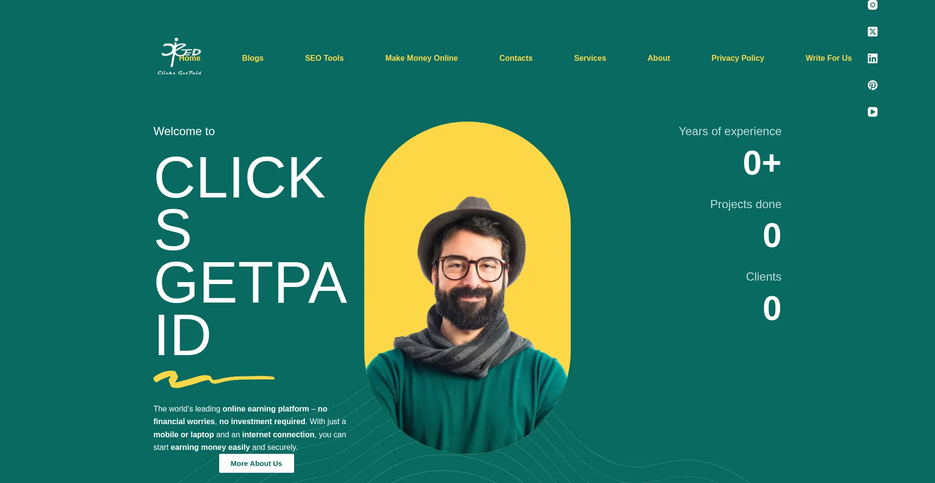 网站上存在社交媒体链接表明 clicksgetpaid.com 在社交媒体上维护官方账户,这是可信度和参与度的积极信号。