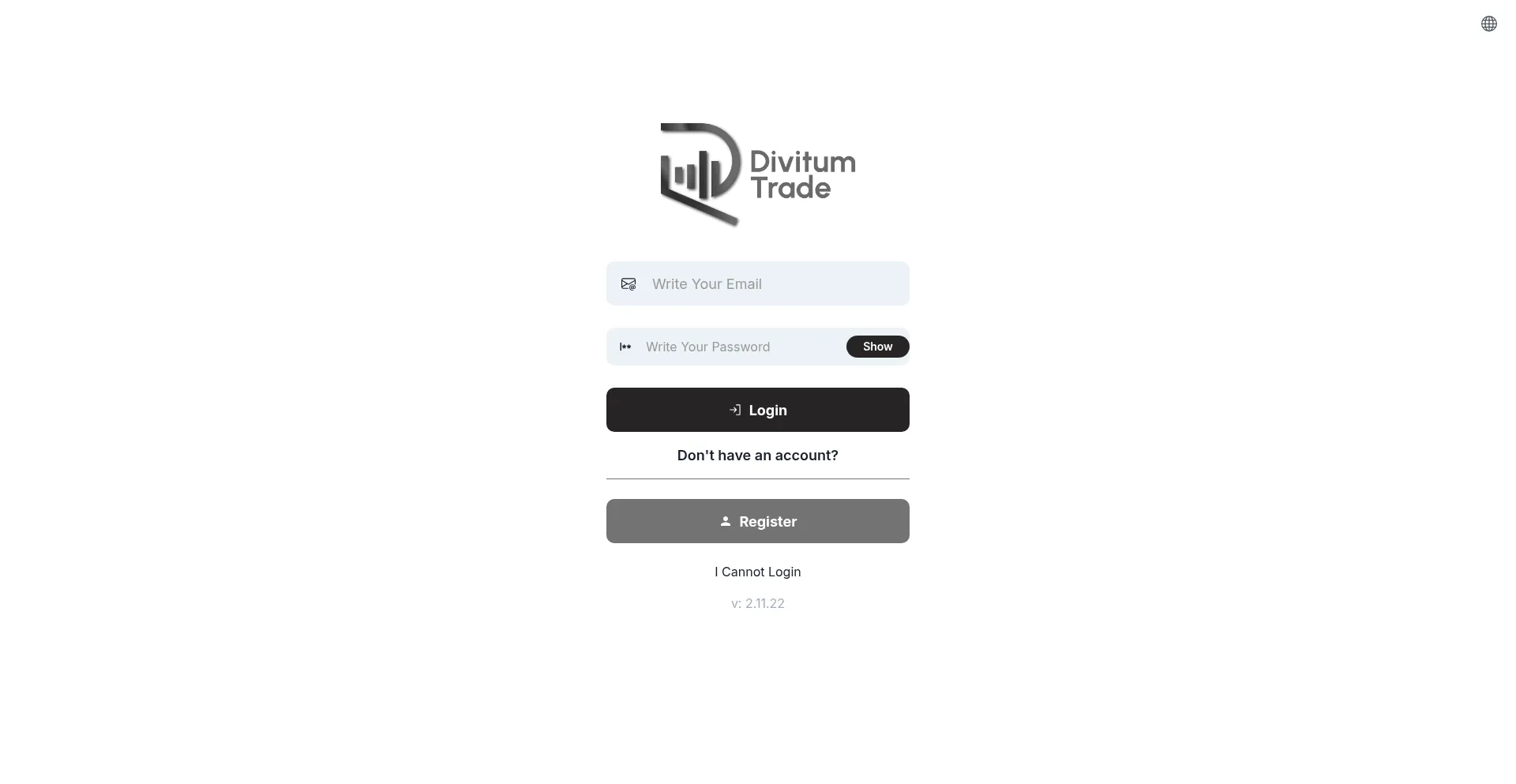 该网站实现数据收集表单,请求个人信息,包括姓名、电子邮件地址、电话号码或其他敏感详细信息。用户应验证 client.divitumtrade.com 的合法性并在提交个人数据前查看隐私政策。
