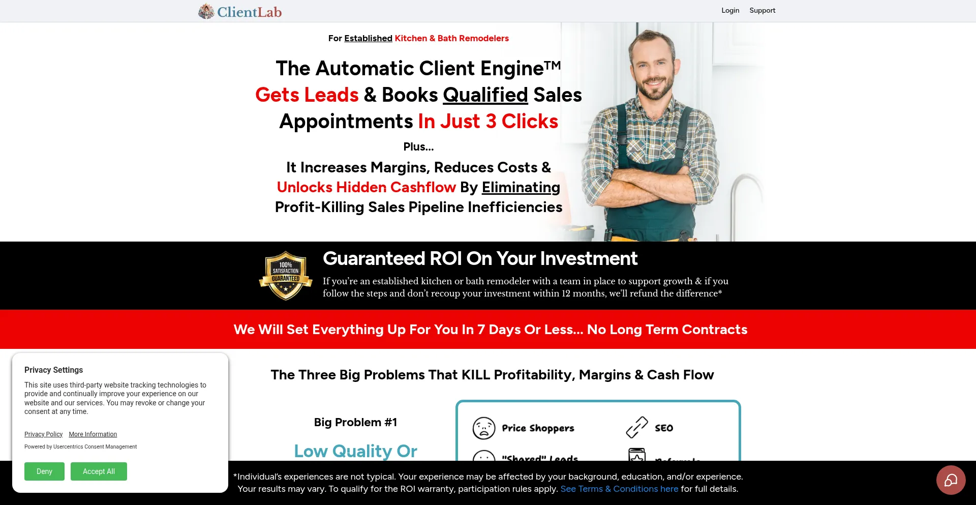 ClientLab is the #1 AI-powered tool for kitchen & bath remodelers who want to automate & scale their leads, appointments and sales via online channels.