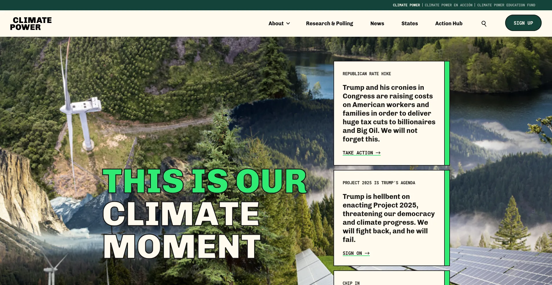 网站上存在社交媒体链接表明 climatepower.us 在社交媒体上维护官方账户,这是可信度和参与度的积极信号。
