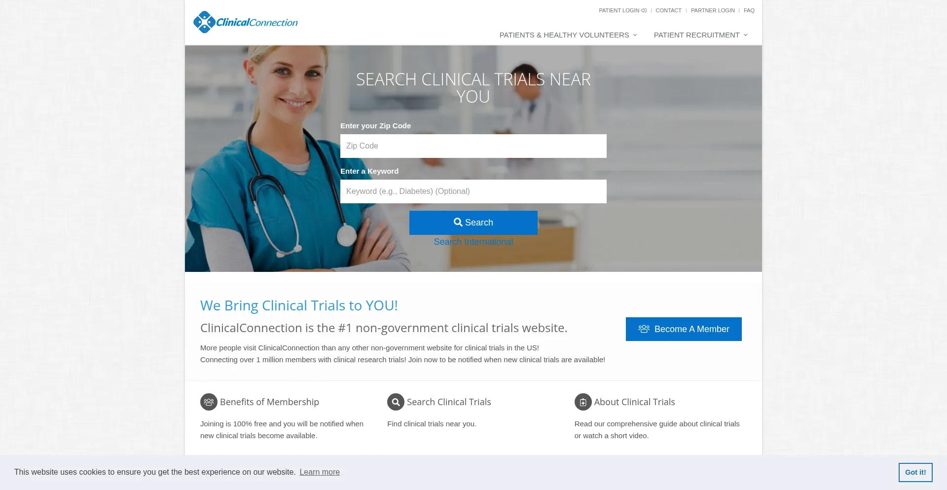 Welcome to ClinicalConnection. A professional source for patient recruitment, clinical trials listings, notifications, and news on clinical research.