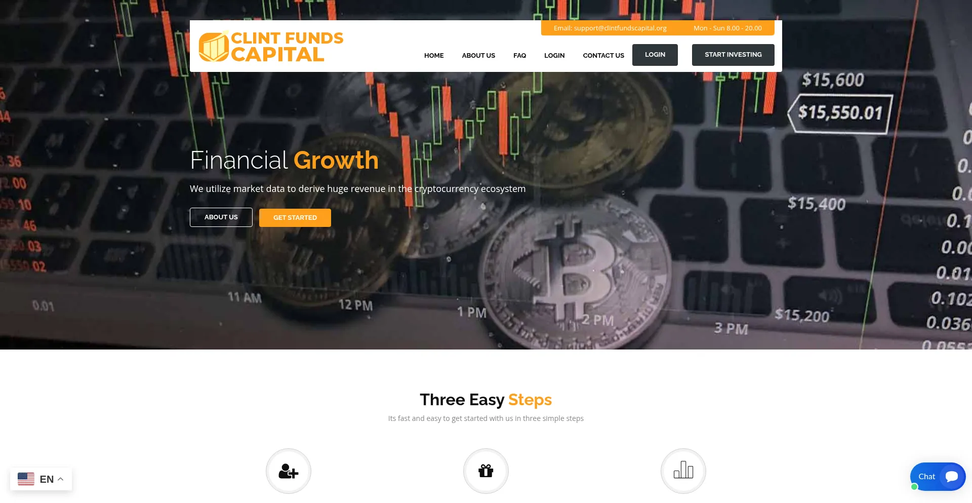 该网站实现数据收集表单,请求个人信息,包括姓名、电子邮件地址、电话号码或其他敏感详细信息。用户应验证 clintfundscapital.org 的合法性并在提交个人数据前查看隐私政策。