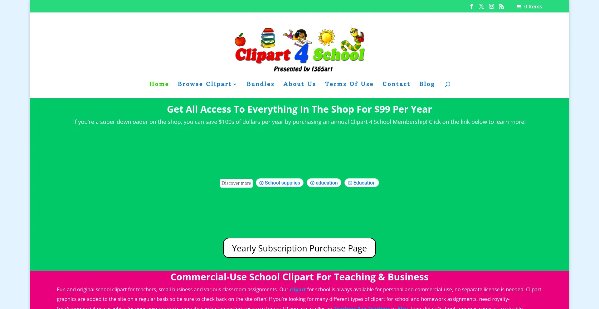 网站上存在社交媒体链接表明 clipart4school.com 在社交媒体上维护官方账户,这是可信度和参与度的积极信号。