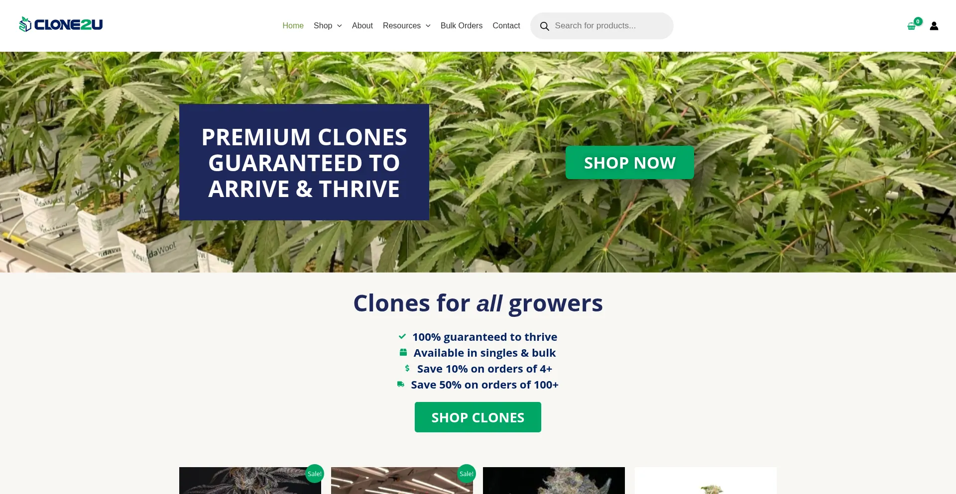 Clone2U offers premium indoor grown clones for ALL growers, whether a homegrower or commercial growers. We offer singles and bulk with 100% Guarantee to Arrive!