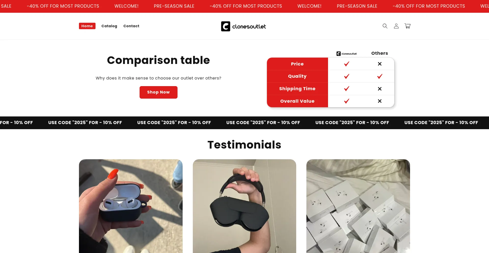 帮助保护他人,快在社交媒体上分享此页面吧!知道clonesoutlets.shop的人越多,骗子就越难得逞。 通过在社交媒体上分享此页面,帮助更多人发现可靠的clonesoutlets.shop吧!