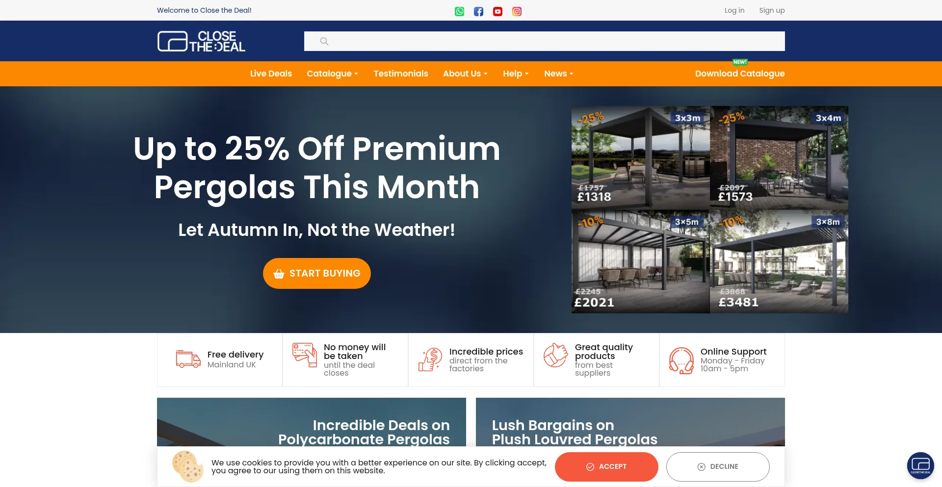 网站上存在社交媒体链接表明 closethedeal.co.uk 在社交媒体上维护官方账户,这是可信度和参与度的积极信号。