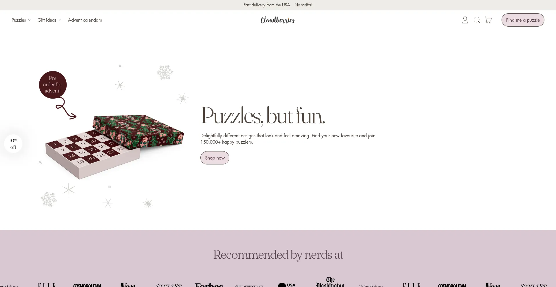 Cloudberries makes fun, beautiful, high-quality jigsaw puzzles for adults. See why everyone's talking about our unusual jigsaws!