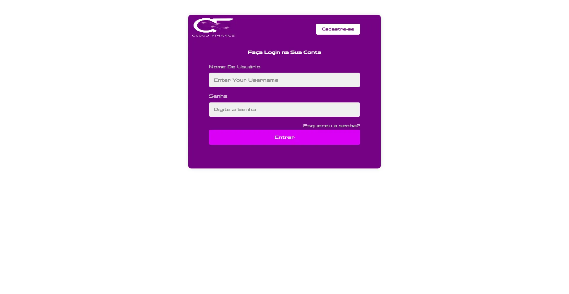 Cloud Finance - Login Page