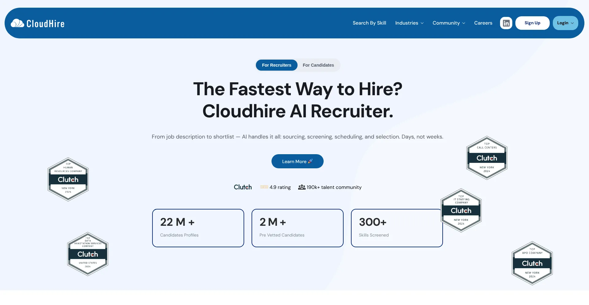 网站上存在社交媒体链接表明 cloudhire.ai 在社交媒体上维护官方账户,这是可信度和参与度的积极信号。