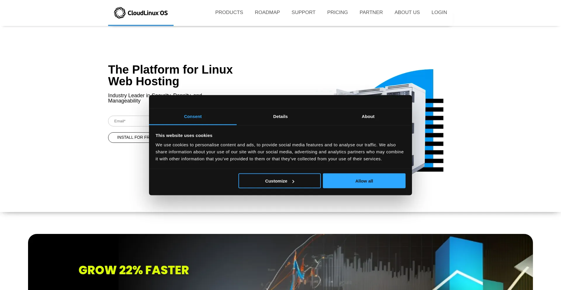 该网站实现符合GDPR或CCPA等隐私法规的cookie同意机制。这表明 cloudlinux.com 遵守数据保护标准并为用户提供对个人数据收集实践的控制。