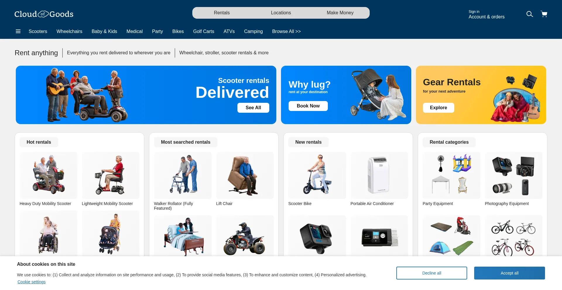 Now you can rent anything anywhere from the #1 equipment rental marketplace: Cloud of Goods. Scooter rentals, wheelchairs, baby gear, tools, party rentals and so much more. Book...