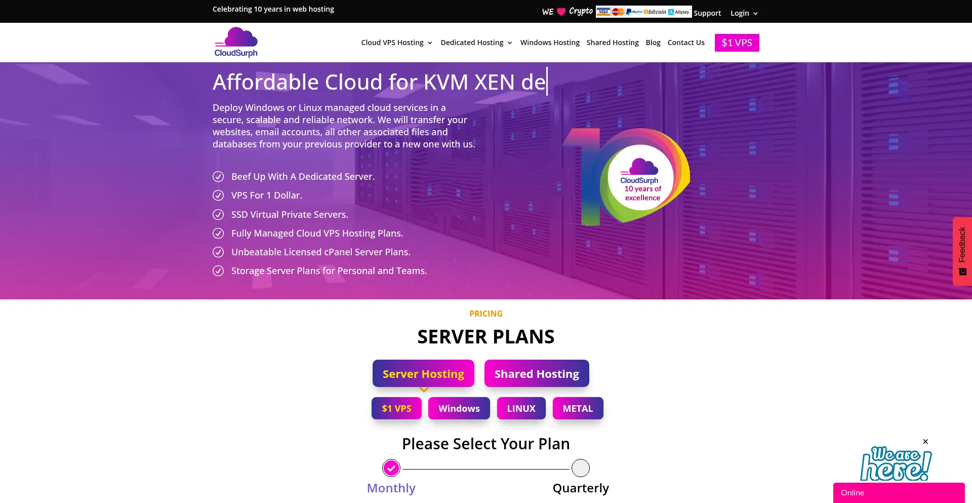 CloudSurph provides Cloud VPS Hosting for small business, KVM XEN deployment & more. We offer VPS for 1 Dollar, Cheap VPS $1 Contact us now.