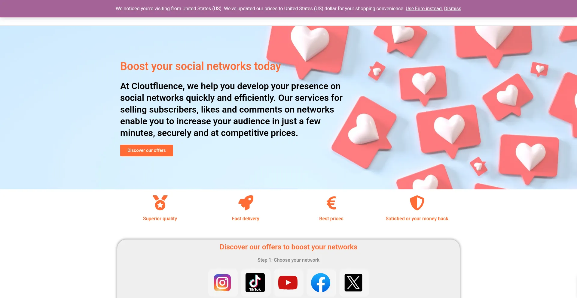 Cloutfluence helps you boost your presence on social networks with quality subscribers, likes and comments, delivered fast.