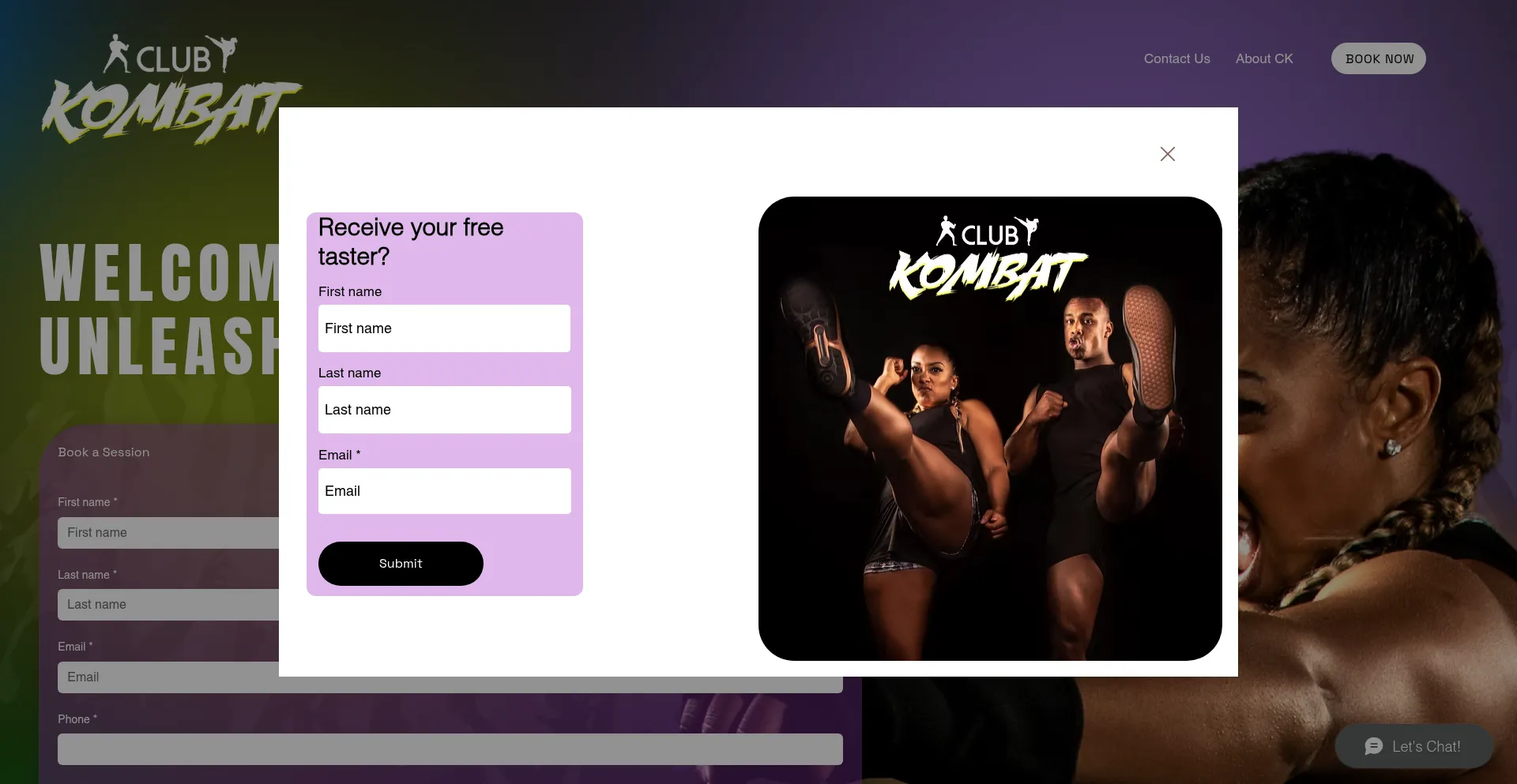 该网站实现数据收集表单,请求个人信息,包括姓名、电子邮件地址、电话号码或其他敏感详细信息。用户应验证 clubkombat.com 的合法性并在提交个人数据前查看隐私政策。
