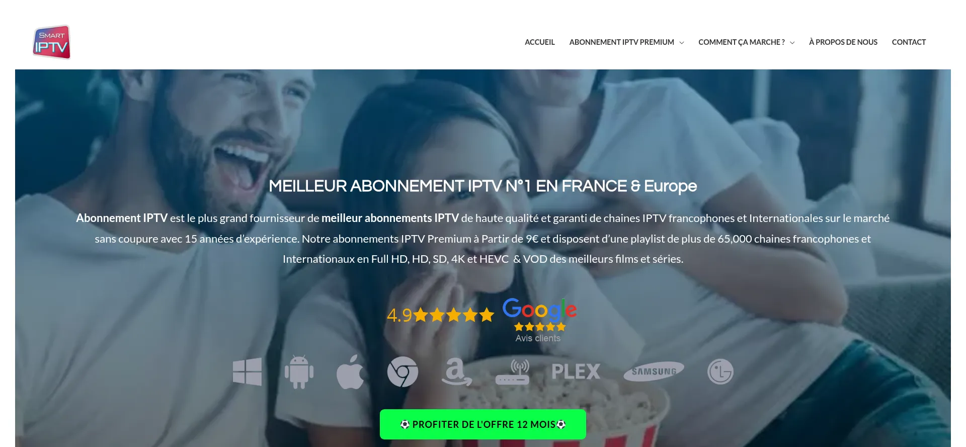 Abonnement IPTV est un fournisseur de meilleur abonnements smart IPTV jusqu'à +65000 Chaînes de haute qualité Partir de 10€ en France garanti sans coupure avec 15 années d...