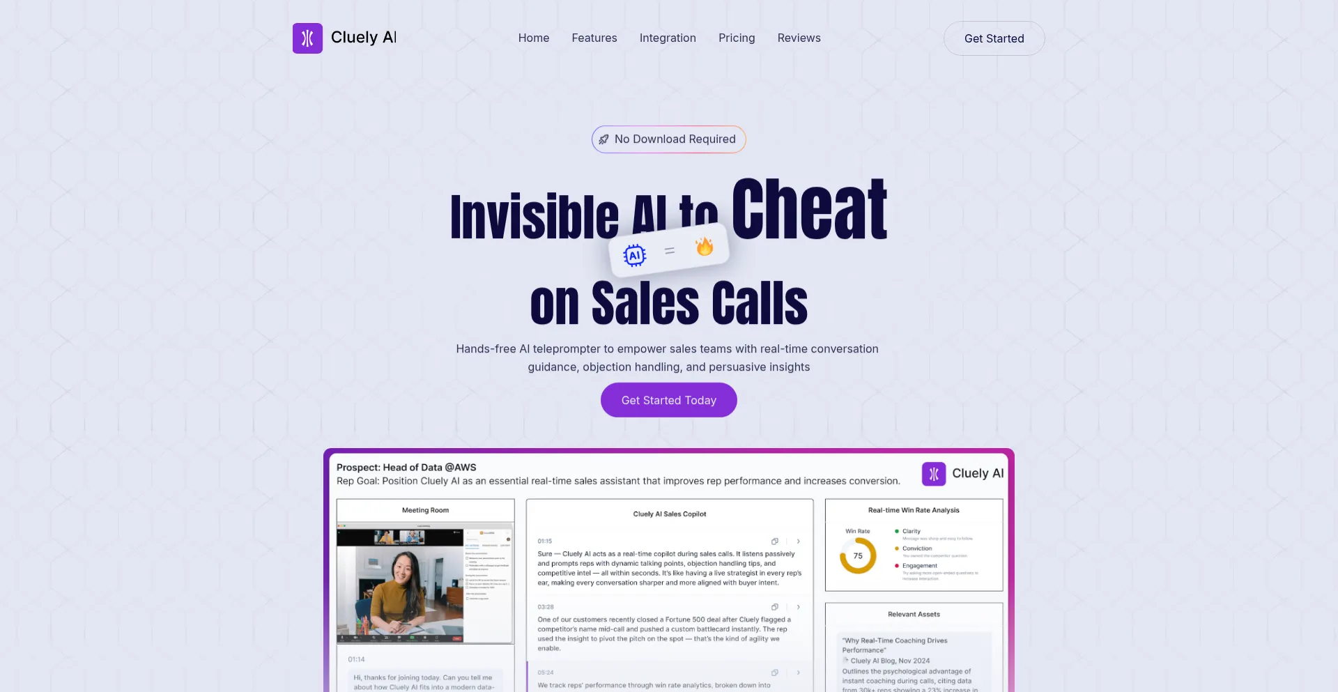 Cluely AI #1 AI Sales Copilot. Like a magical teleprompter to empower sales reps with real-time conversation guidance, objection handling, and persuasive insights. Confidently c...