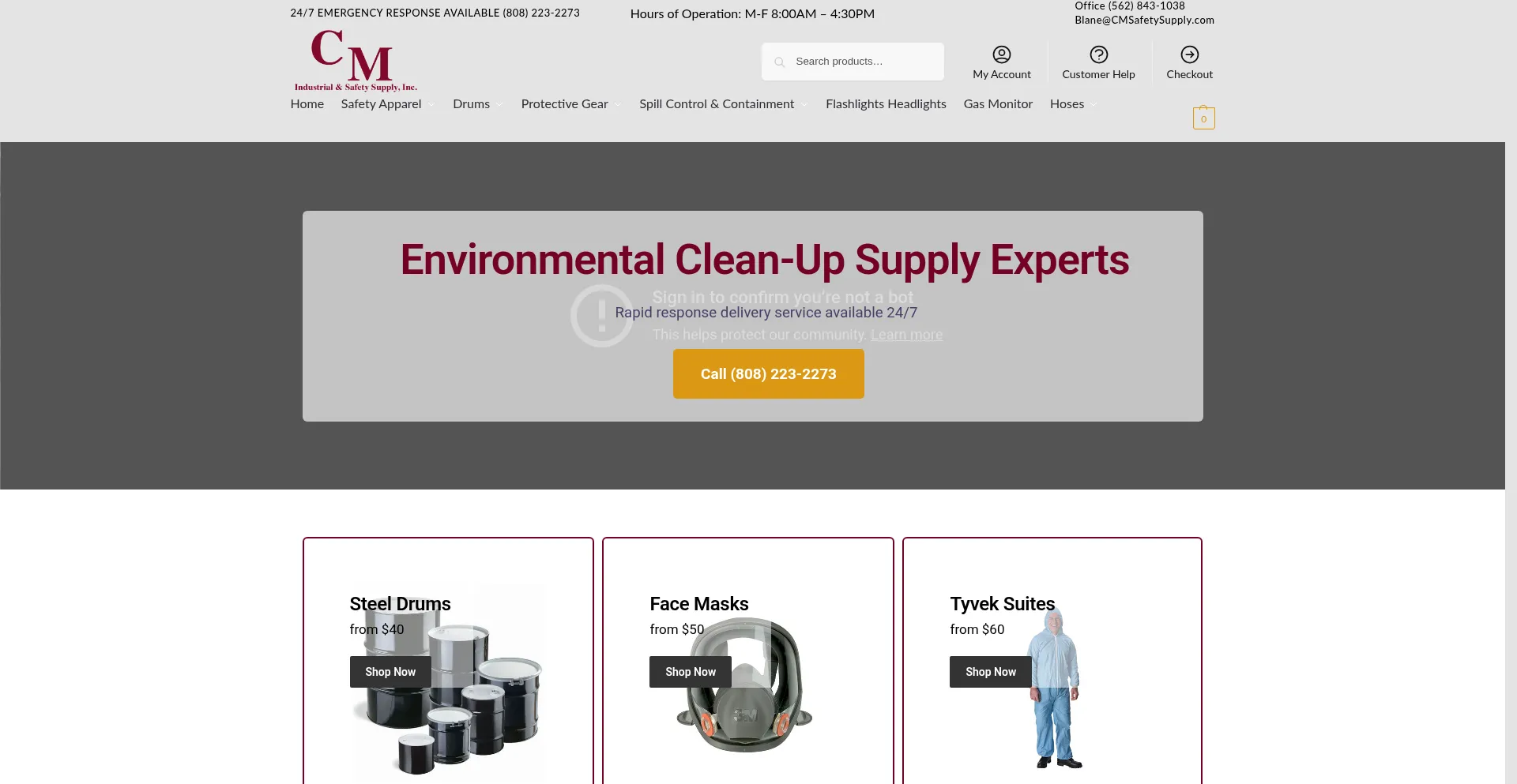 分析表明 cmsafetysupply.com 作为电子商务平台运营,促进商品或服务的在线交易。该网站实现了购物车功能、支付处理系统和产品目录功能,这些是商业零售运营的典型特征。