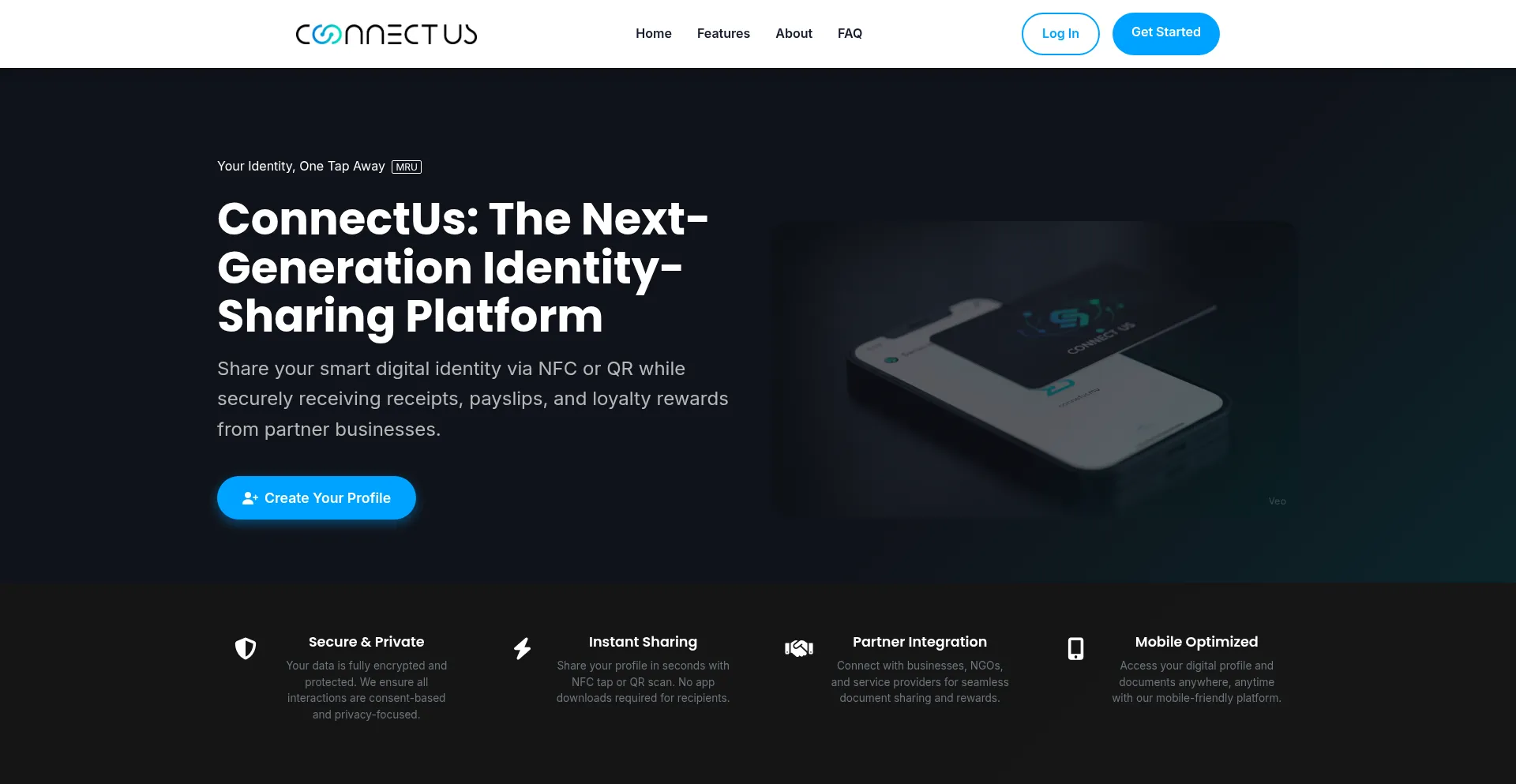 ConnectUs offers NFC-enabled digital business cards that replace paper cards with smart, tap-to-share profiles for instant sharing of your professional identity.