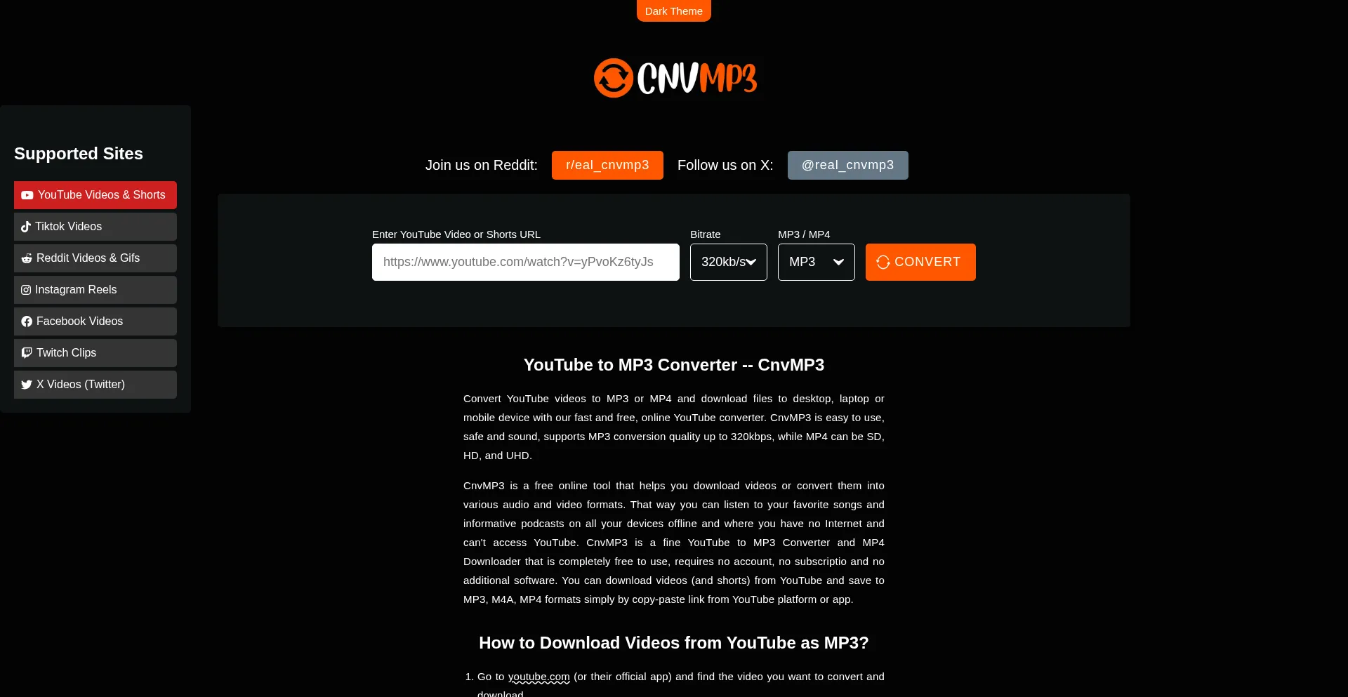 Convert YouTube videos to MP3, MP4 online and download to your device with our fast, free YouTube converter. CnvMP3 is easy to use, safe and supports 320kbps.