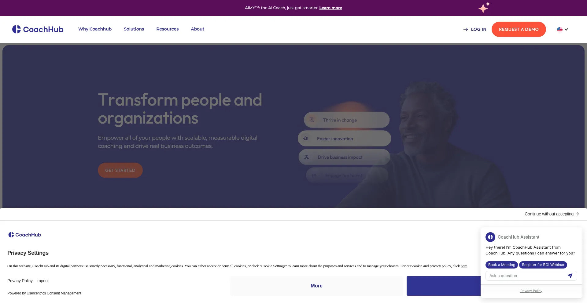 该网站实现符合GDPR或CCPA等隐私法规的cookie同意机制。这表明 coachhub.com 遵守数据保护标准并为用户提供对个人数据收集实践的控制。