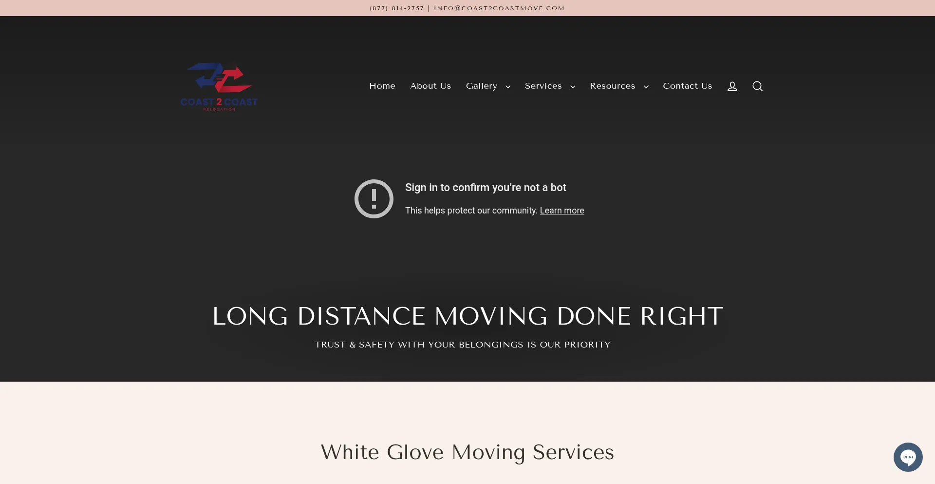 该网站显示来自认可机构的安全认证或信任印章,表明符合安全标准、数据保护协议或行业法规。来自 coast2coastrelocationusa.com 的信任印章表明遵守已建立的安全实践和运营透明度。