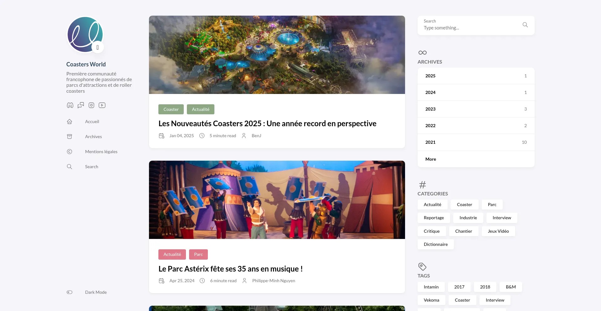 Première communauté francophone de passionnés de parcs d'attractions et de roller coasters