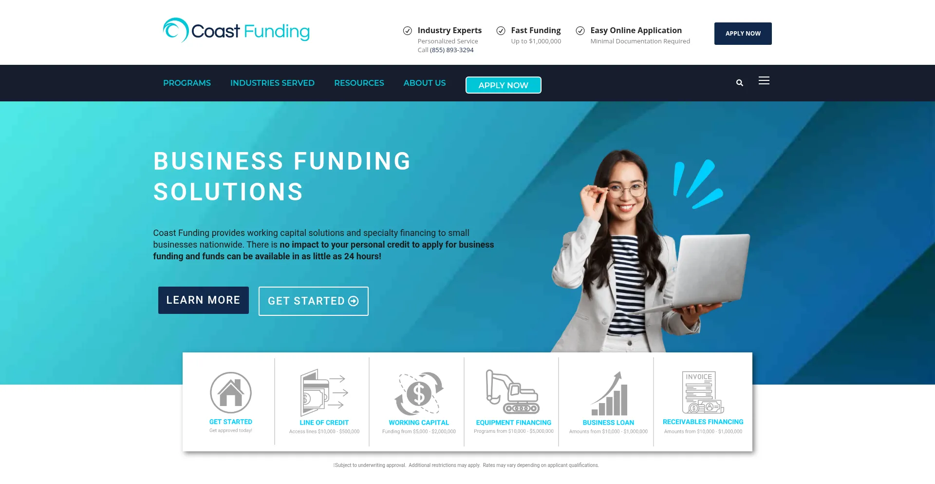 该网站实现数据收集表单,请求个人信息,包括姓名、电子邮件地址、电话号码或其他敏感详细信息。用户应验证 coastfunding.com 的合法性并在提交个人数据前查看隐私政策。