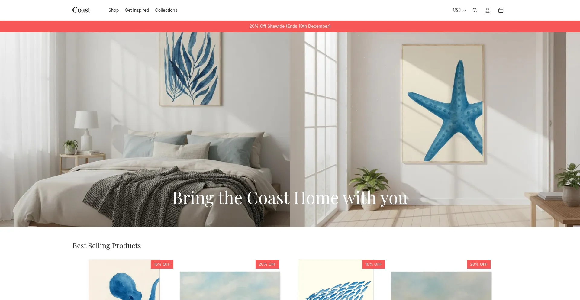 分析表明 coastwallart.com 作为电子商务平台运营,促进商品或服务的在线交易。该网站实现了购物车功能、支付处理系统和产品目录功能,这些是商业零售运营的典型特征。