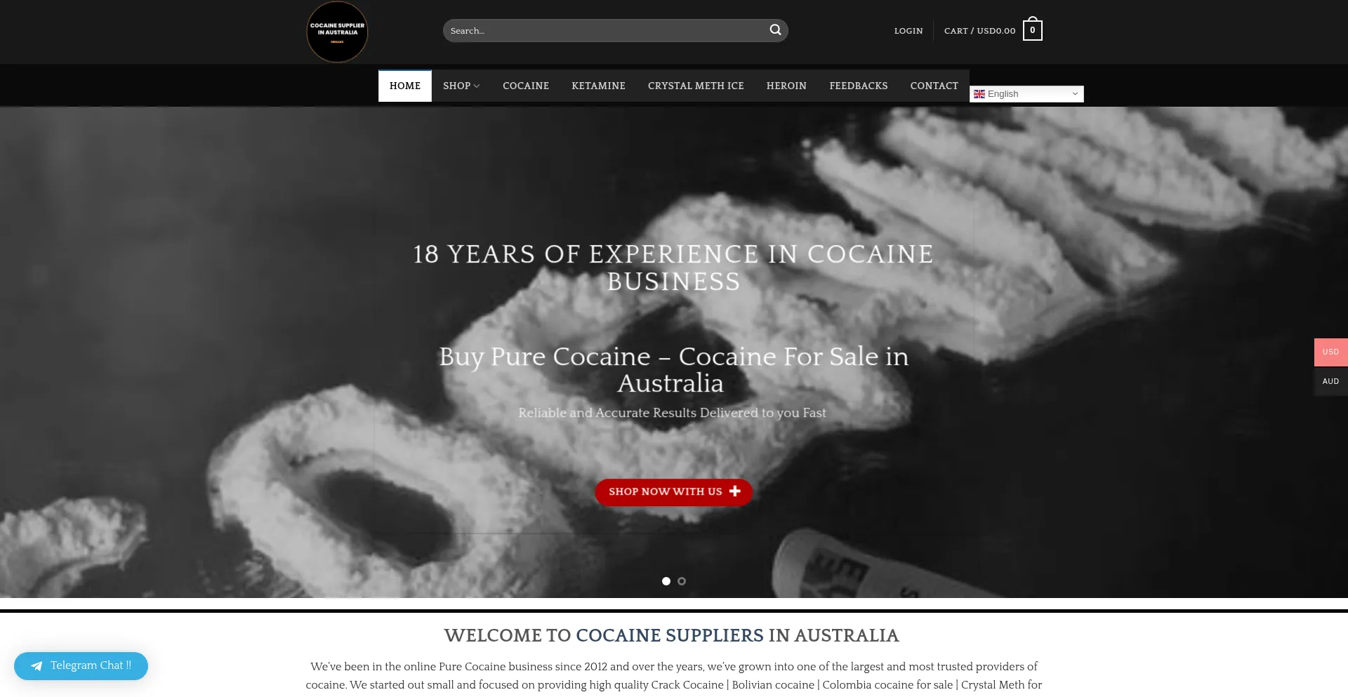 分析表明 cocaineinaustralia.com 作为电子商务平台运营,促进商品或服务的在线交易。该网站实现了购物车功能、支付处理系统和产品目录功能,这些是商业零售运营的典型特征。