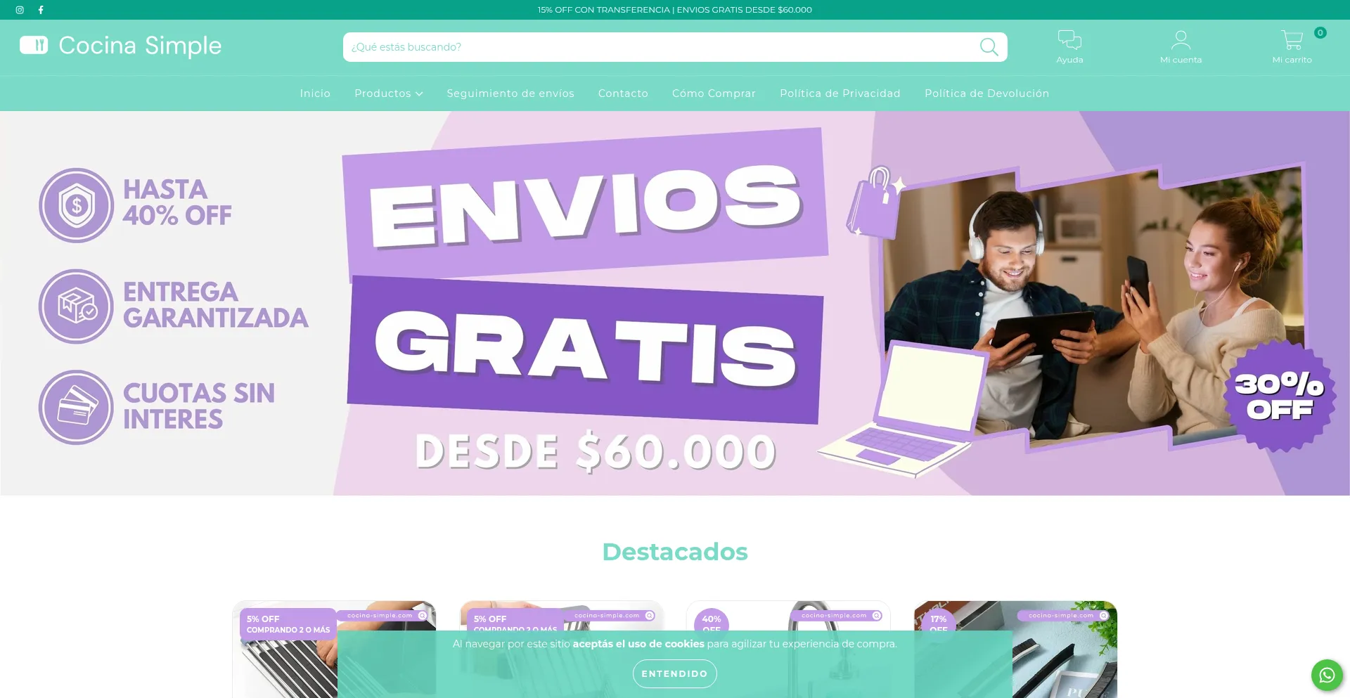 Comprá productos de Cocina Simple por internet. Tenemos limpieza, baño y más. Hacé tu pedido y pagalo online.