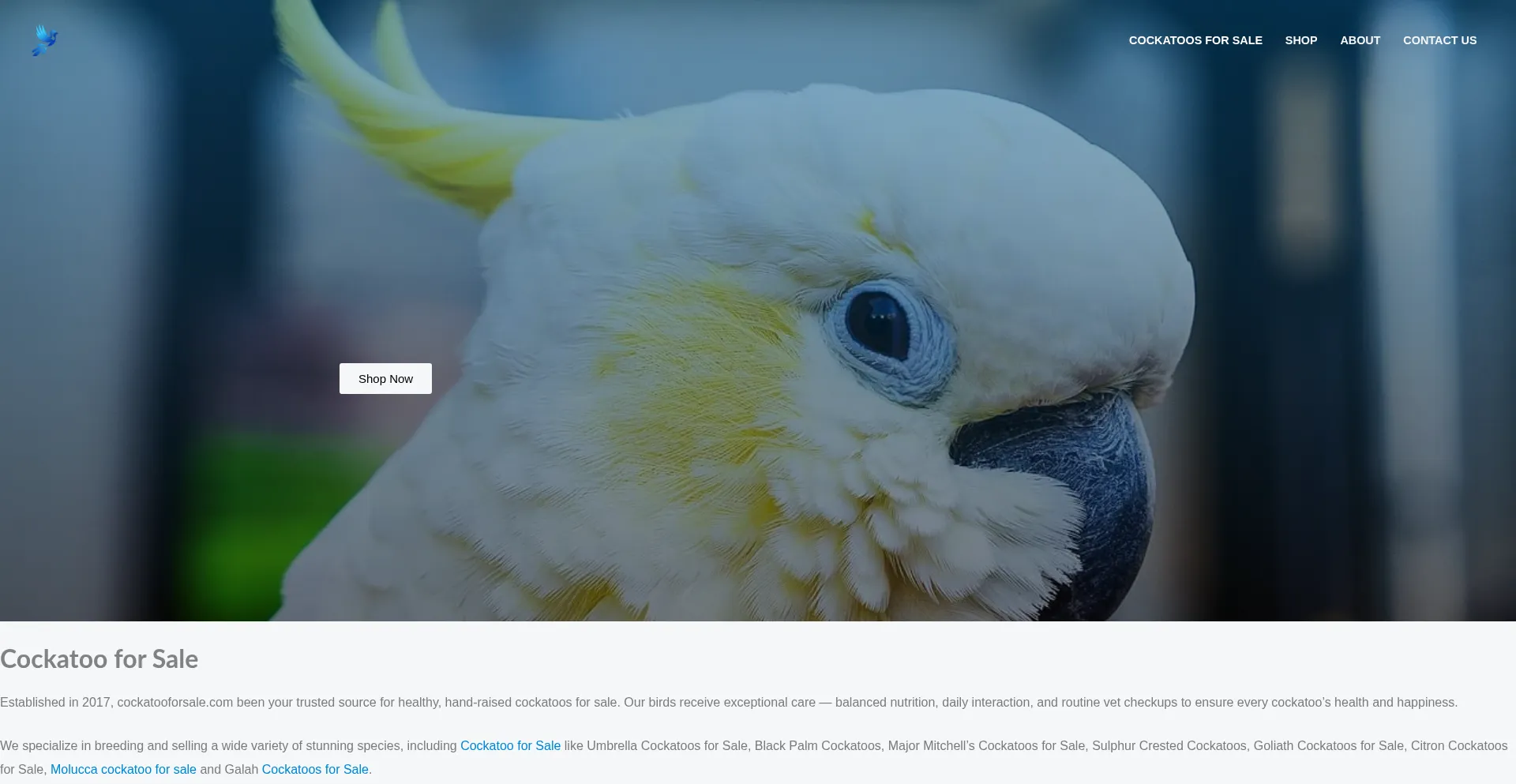 分析表明 cockatooforsale.com 作为电子商务平台运营,促进商品或服务的在线交易。该网站实现了购物车功能、支付处理系统和产品目录功能,这些是商业零售运营的典型特征。