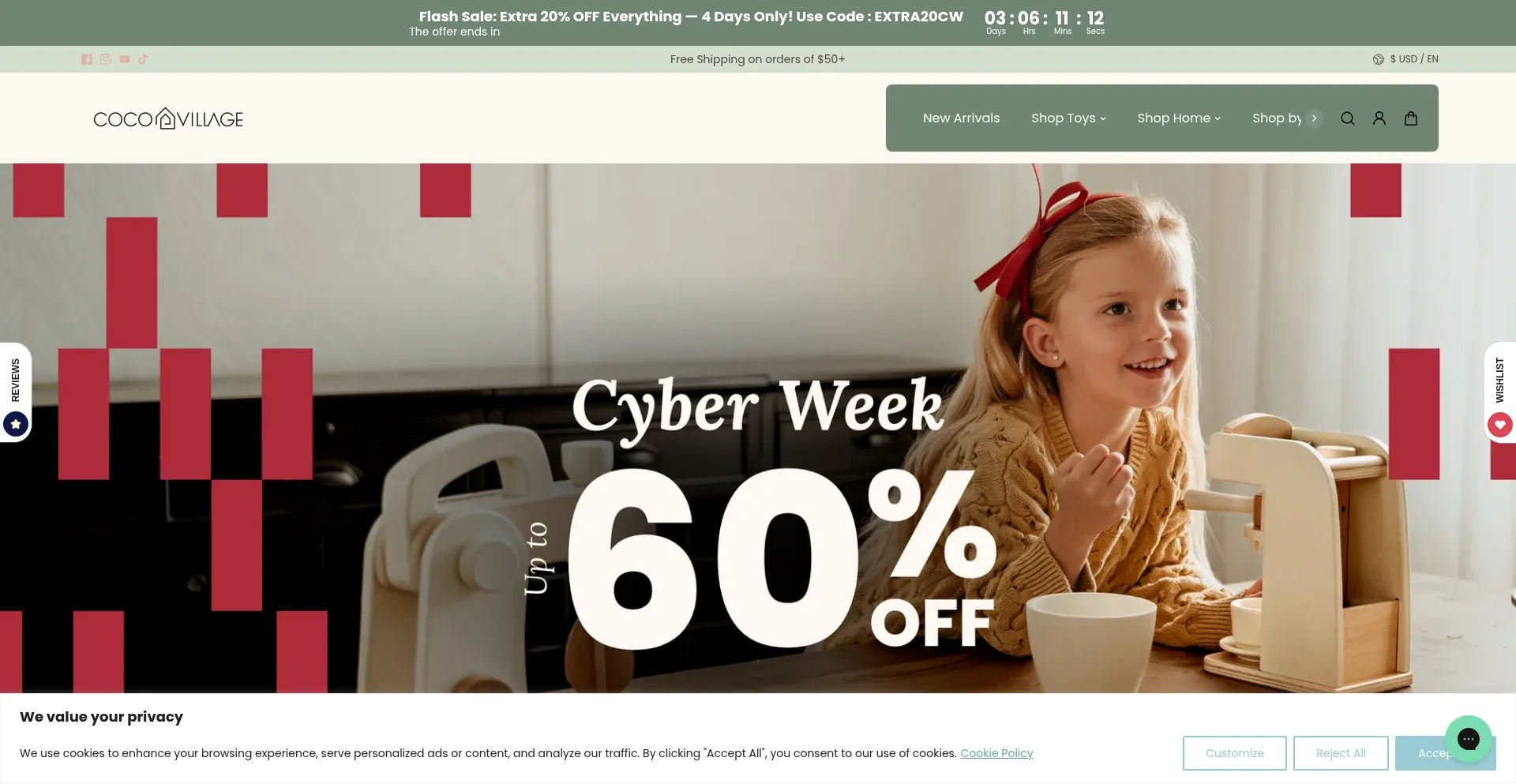 该网站实现符合GDPR或CCPA等隐私法规的cookie同意机制。这表明 cocovillage.com 遵守数据保护标准并为用户提供对个人数据收集实践的控制。