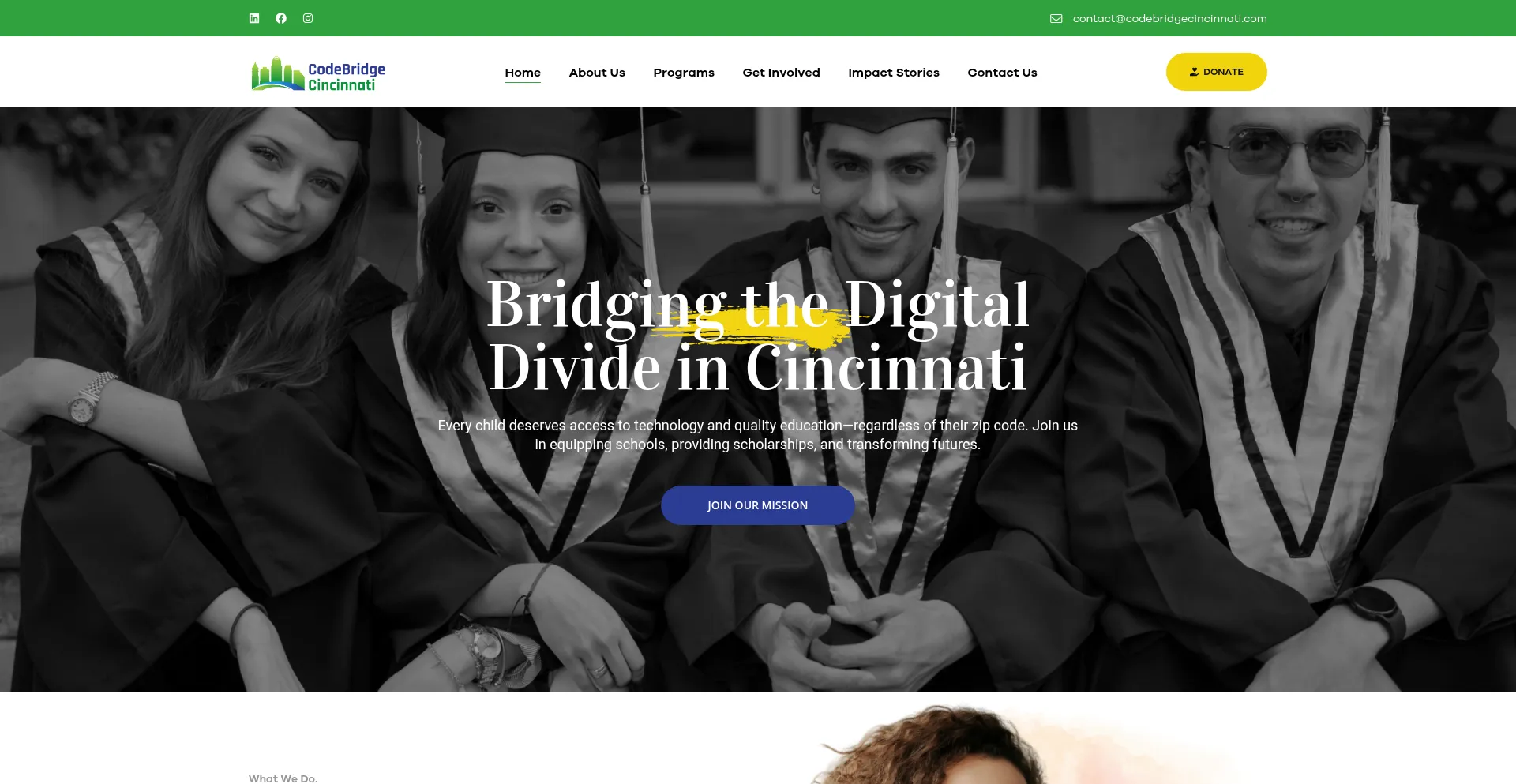 CodeBridge Cincinnati – We strive to eliminate barriers preventing underprivileged youth from achieving success in today’s digital-driven world.