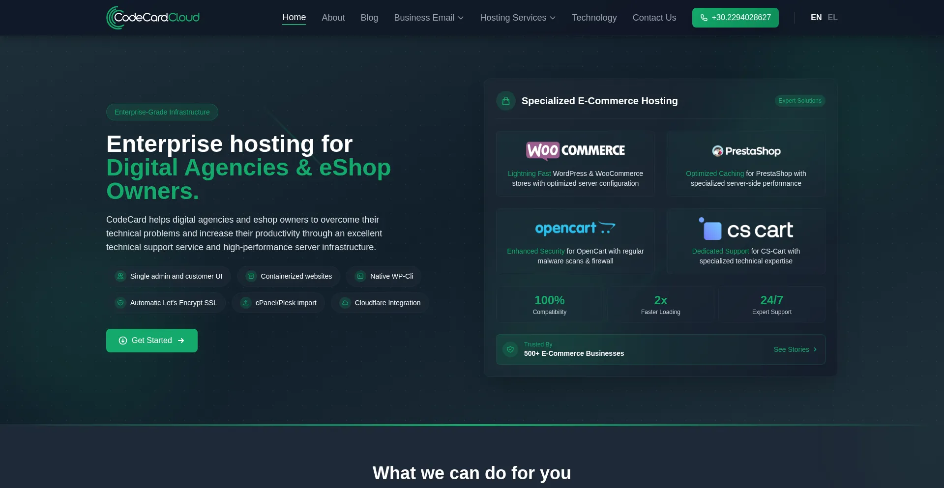 CodeCard provides enterprise-grade hosting solutions for digital agencies and e-commerce businesses with optimized performance, scalability, and 24/7 technical support. Speciali...