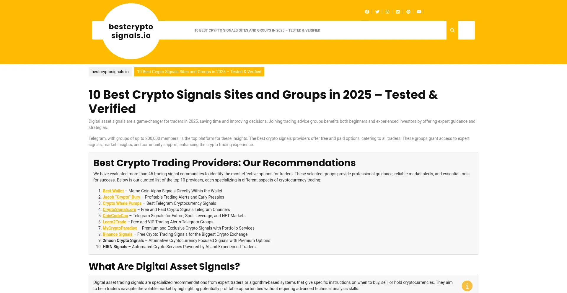 Top 10 Crypto Signals providers of 2025: Compare success rates, features and pricing of free & paid Telegram channels for better trading.