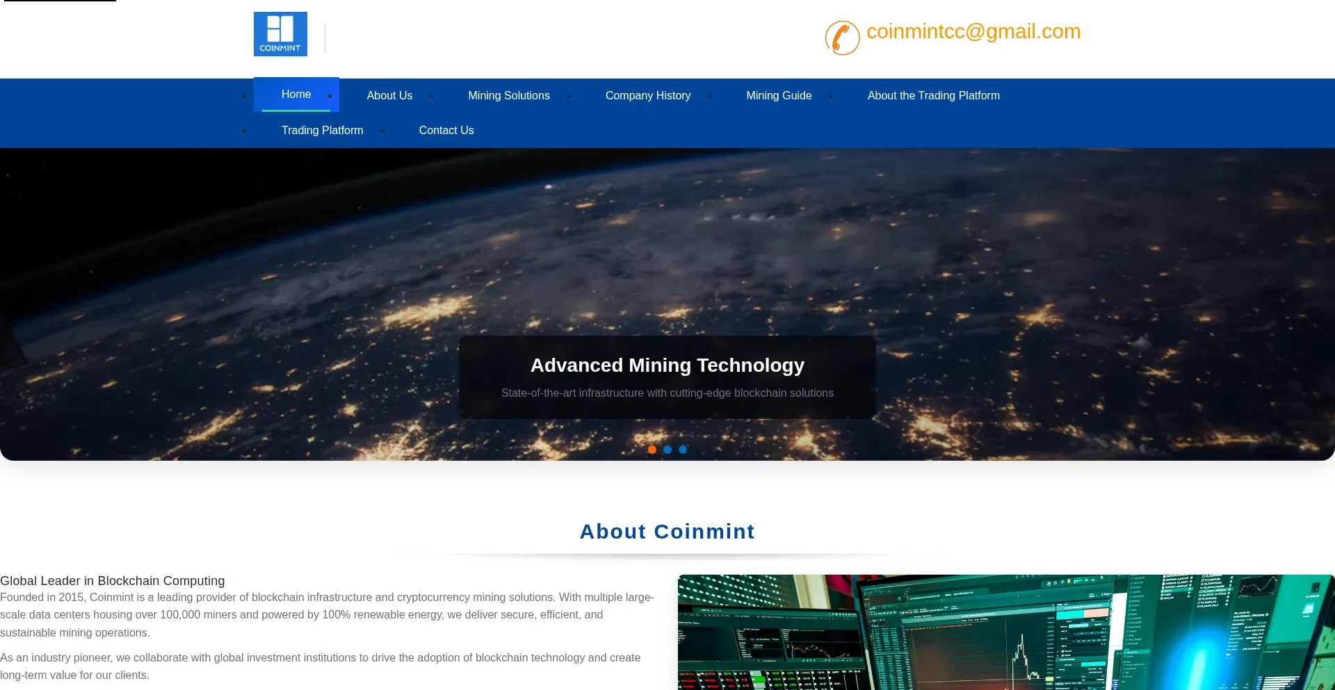 Coinmint is the world's leading blockchain computing power center and mining cluster, providing efficient, secure, and sustainable cryptocurrency mining solutions.