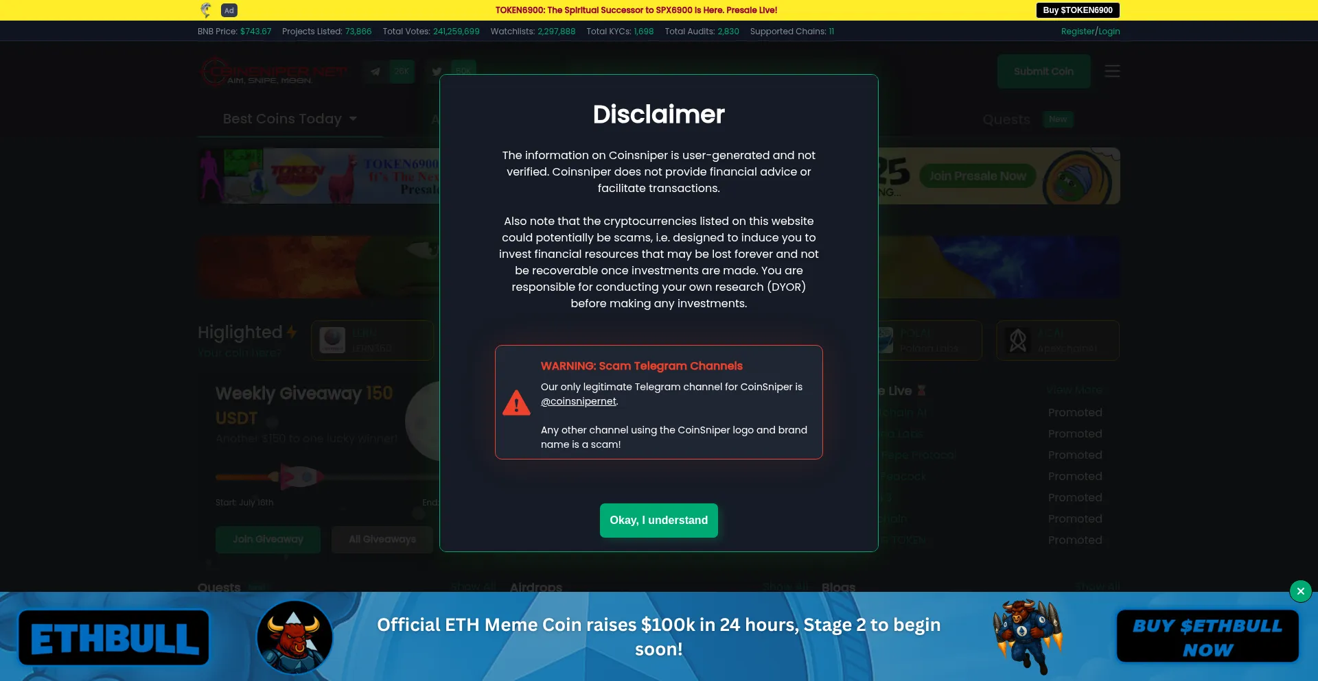 Coinsniper.net 运营欺诈平台,旨在通过推广虚假产品、服务或投资机会的欺骗性方案提取个人信息和金融资产。