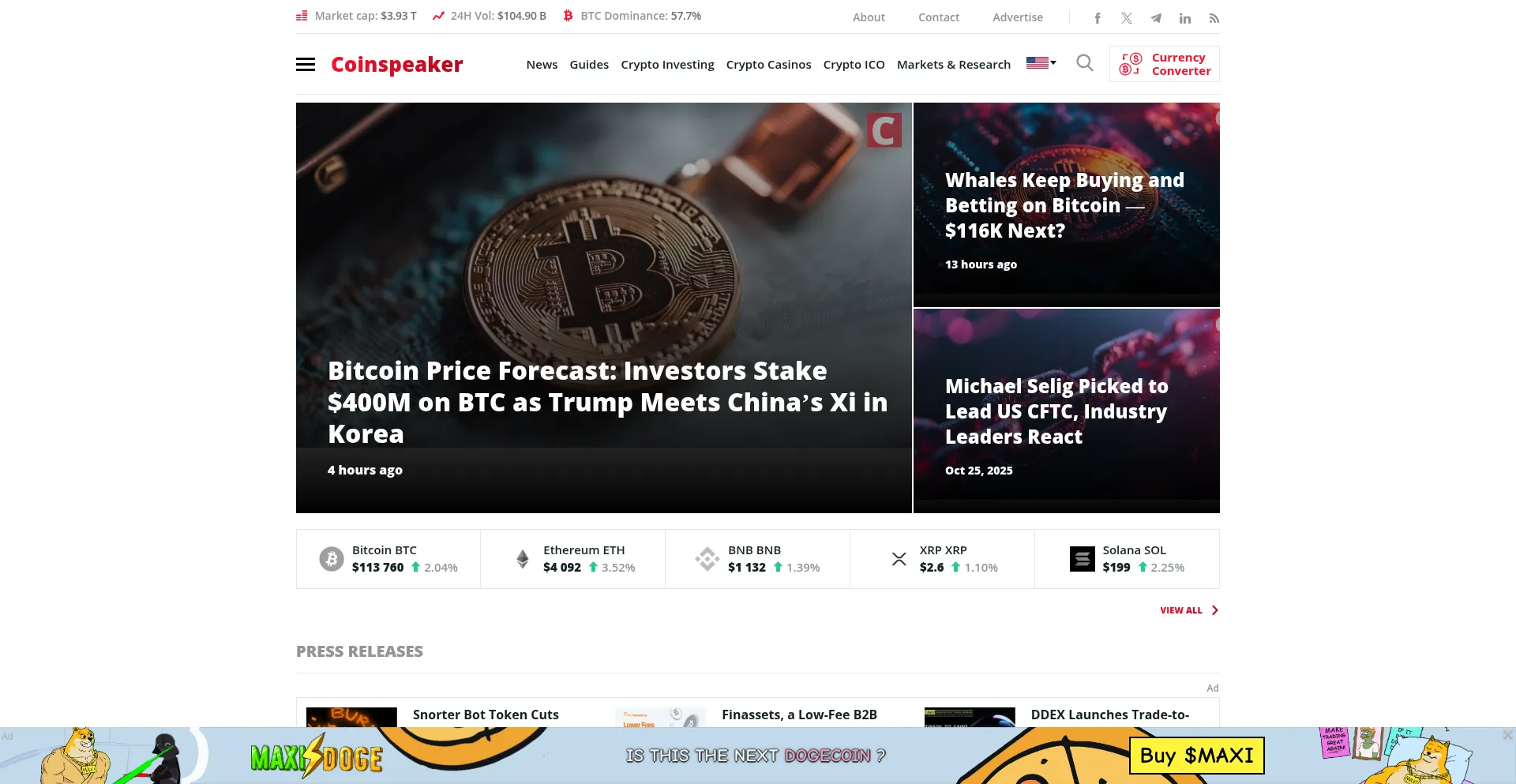 Coinspeaker - Bitcoin, Ethereum, Altcoins and Crypto News with Analysis, Live Prices, Data Charts and Guides