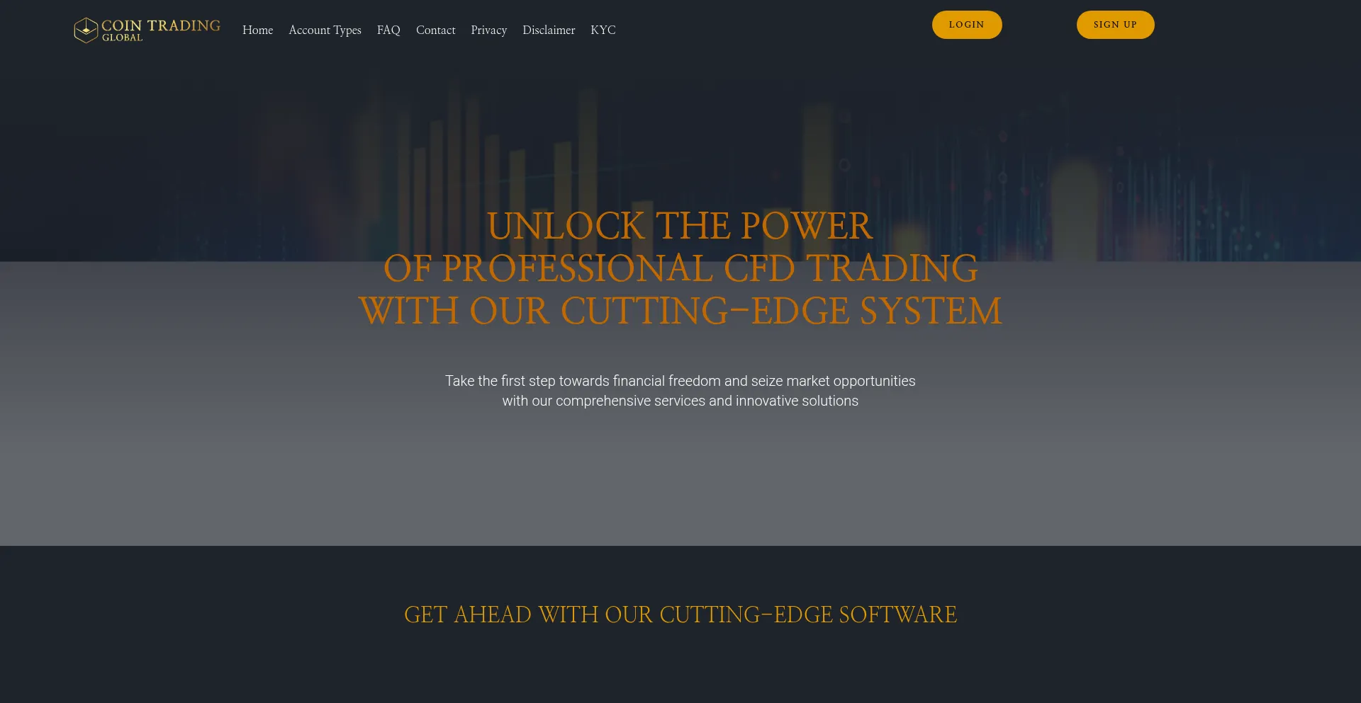 该网站实现数据收集表单,请求个人信息,包括姓名、电子邮件地址、电话号码或其他敏感详细信息。用户应验证 cointrading-global.net 的合法性并在提交个人数据前查看隐私政策。