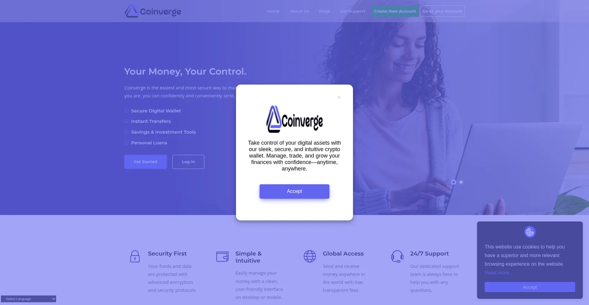coinverge.online 使用 Bootstrap,这是一个广泛采用的开源响应式网页开发框架。Bootstrap 通过标准化组件和样式实现移动友好界面的高效创建。